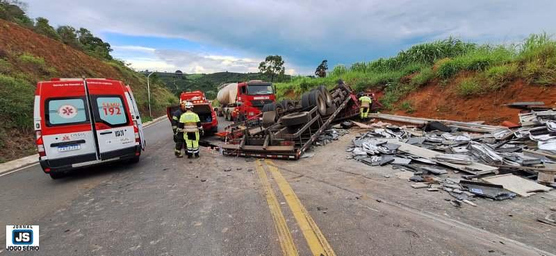 Mais um caminhão capota na rodovia de Guaxupé e São Pedro da União