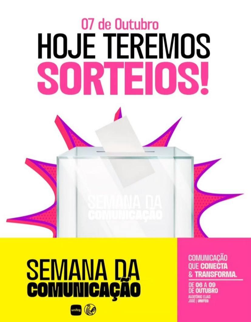 A Semana da Comunicação 2025 do Unifeg segue com uma programação repleta de atividades, palestras e oficinas, e nesta terça-feira, 7 de outubro, os participantes ainda terão a chance de concorrer a diversos sorteios especiais durante o evento.