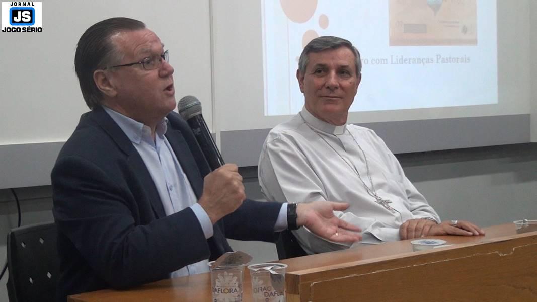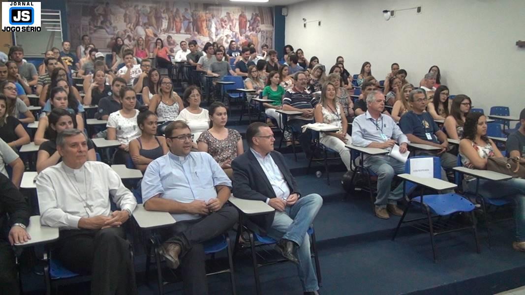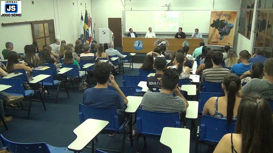 Já à noite, no Auditório Elias José, que fica no Unifeg, dom Lanza e o reitor das escolas da FUNDEG, professor doutor Reginaldo Arthus, mais uma vez elencaram a Campanha da Fraternidade 2017 como tema central de uma expressiva reunião. Além deles, membros das duas entidades, representantes de classes, biólogos do Centro Universitário e de outros locais, assim como estudantes, em geral, participaram de um momento importante, quando se comprometeram a lutar por um amanhã melhor: “A proteção de cada bioma significa a proteção de cada cultura. Esta temática é muito importante, despertou em nossos alunos a oportunidade de ampliar seus horizontes a respeito da questão ambiental, à medida em que, hoje, a apresentação da Igreja foi muito evidente àquilo que se pretende fazer. É uma defesa pela vida, pela diferença, de forma que cada ser humano deve respeitar sua natureza, sua fé, uma fé que, inclusive, é construída com base nas dificuldades e nos desafios que cada território nos compõe. Enfim, estamos muito felizes e agradecidos com a Cúria Diocesana de Guaxupé.