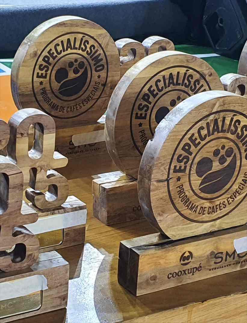 Além do reconhecimento público, os 10 lotes mais bem classificados receberão o troféu Especialíssimo — uma peça carregada de significado e produzida de forma totalmente sustentável. O troféu foi confeccionado com madeira reaproveitada de antigos pés de café que, por muitos anos, produziram grãos de alta qualidade. Agora, esses mesmos pés ganham um novo propósito: representar o momento único e Especialíssimo vivido pelas famílias cooperadas que tiveram seus cafés ranqueados entre os melhores da safra 2025.
