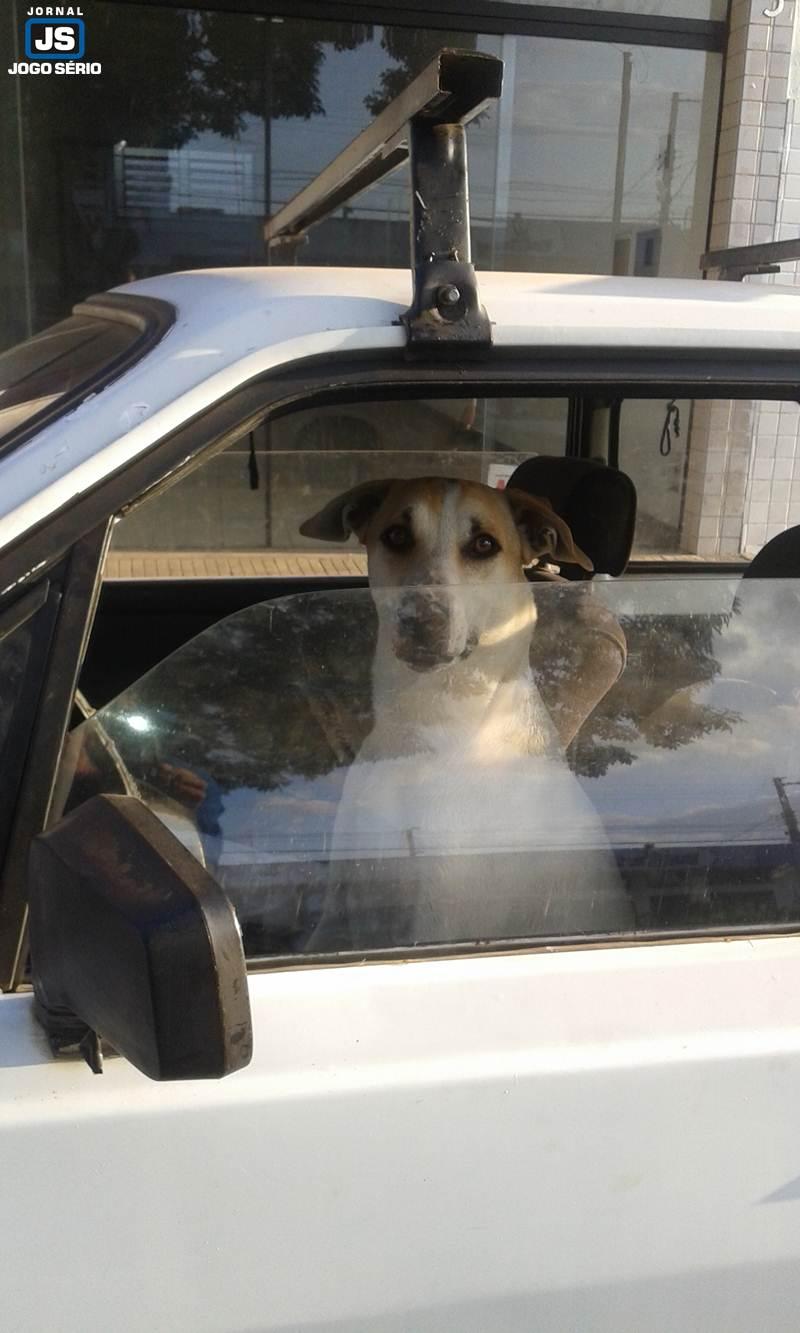 Este cãozinho aí foi alvo de admiração e espanto por parte de transeuntes que passavam pela Avenida Dona Floriana, na área central de Guaxupé, mais precisamente em frente à Vivafarma, há poucos dias. Organizadamente a postos, no volante do Corcel II de seu dono, o pintor Nikinho, do Colmeia II, o animal mais se parecia com um chofer, a espera do patrão para conduzi-lo pela cidade. Quem passava e percebia a cena assustava-se, haja vista que não é muito comum um cachorro "dirigindo" automóvel. Presente à ocasião, o Jornal JOGO SÉRIO "clicou" a cena e a compartilha com seus leitores, lembrando que nem só de notícias sérias vive a humanidade. Ótima semana a todos!!!