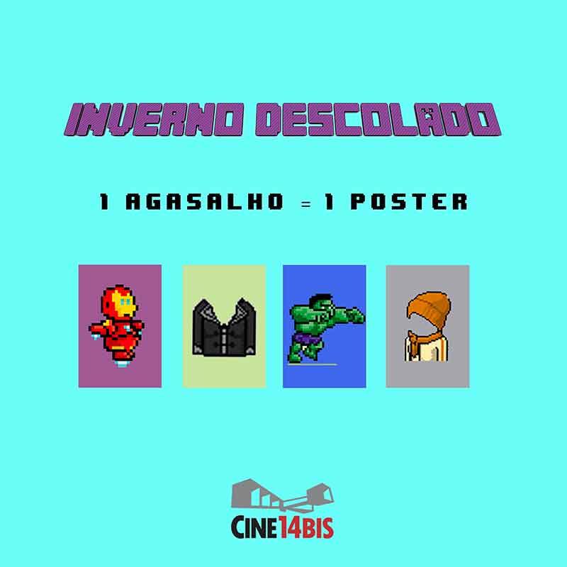 Para quem sempre quis ter um pôster do seu filme preferido em casa agora é a hora. O Cine 14 Bis está realizando a campanha Inverno Descolado, os interessados podem doar uma peça de roupa e escolher um dos cartazes disponíveis para colecionar.