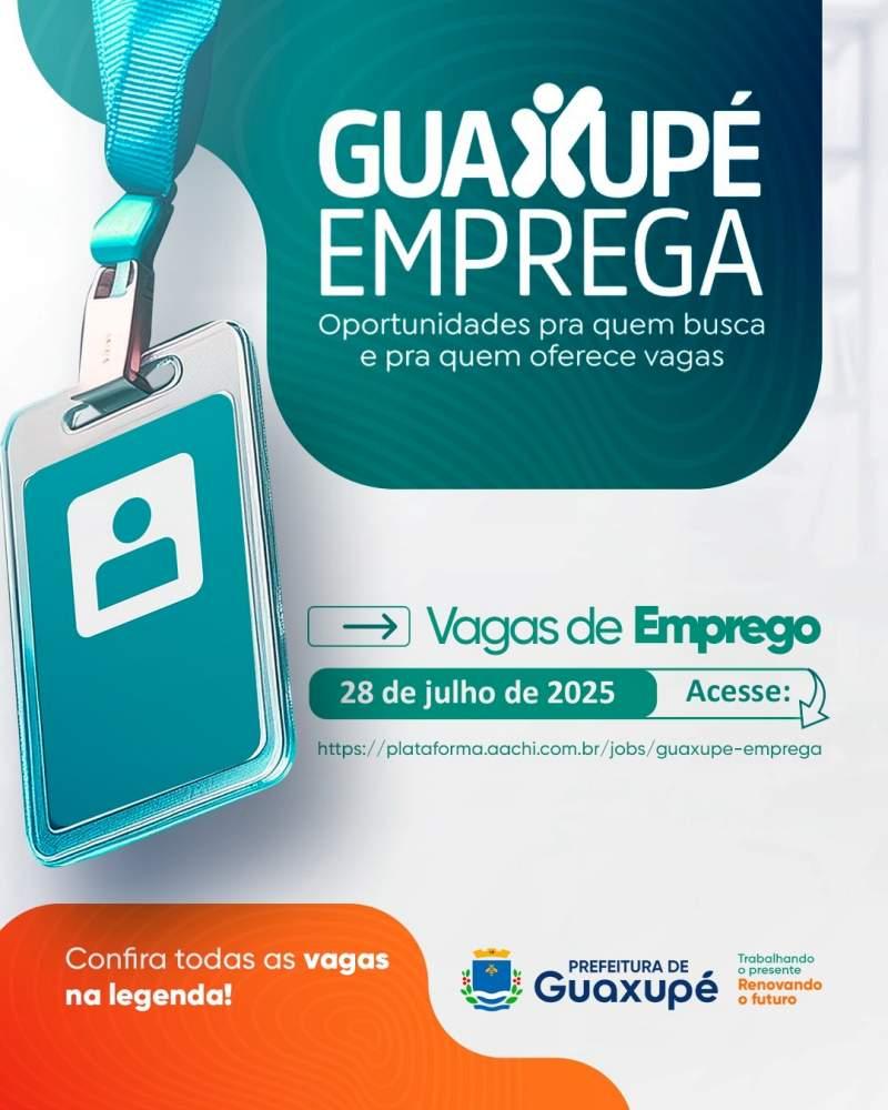 O Programa Guaxupé Emprega, da Secretária Municipal de Desenvolvimento Econômico, divulga, neste conteúdo, novas vagas de emprego para as mais distintas funções: construção e serviços gerais: ajudante geral, armador, pedreiro, carpinteiro, servente de obras, tratorista, caseiro, jardineiro, auxiliar de serviços gerais; Produção e Logística: auxiliar de produção (comum e fundição), almoxarifado/estoque, expedição, operador de empilhadeira, mecânico de manutenção, serralheiro e soldador; Administrativo e Comercial: assistente administrativo, auxiliar administrativo, comprador, assistente de RH, assistente de marketing, consultor de vendas, representante comercial; Atendimento e Vendas: atendente, balconista de açougue, vendedor, vendedora, vendedor externo, caixa delivery, operador de caixa; Transporte: motorista, motorista de ônibus, motorista de carreta, motorista bitrem Jr, motorista de entregas; Cozinha e Alimentação: auxiliar de cozinha (diurno), cozinheiro(a); Moda e Calçados: montador(a) de calçados, cortador(a) de calçados / sapatos / camisetas, costureira (1 e 2 agulhas); Técnicos e Especializados: técnico em enfermagem, técnico em Segurança do Trabalho, técnico de Segurança, técnico em óptica; Saúde e outros: ASB - auxiliar de saúde bucal, doméstica, controle de acesso e portaria, porteiro (Há, ainda, vagas para Pessoas com Deficiência – PCD). – Atuante entre as pessoas que buscam recolocação no mercado de trabalho e as organizações empresariais, o referido serviço contribui para com a melhora da economia, ao mesmo tempo em que combate o desemprego. Para pessoas que se colocam à disposição, o Guaxupé Emprega disponibiliza espaço para o cadastro de currículos: https://plataforma.aachi.com.br/jobs/guaxupe-emprega. Já os atendimentos presenciais ocorrem na sede da Secretaria de Desenvolvimento Econômico, situada à Rua Coronel Joaquim Costa, nº 183, no Centro de Guaxupé (antigas Academia de Comércio ou Escola Interativa). Se precisar, informe-se ainda no telefone (35) 9-8862-1595.