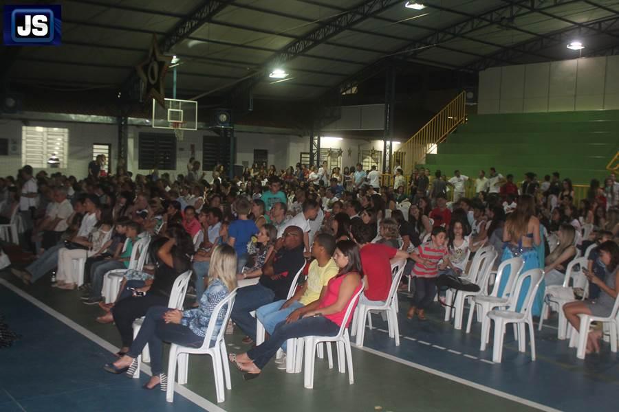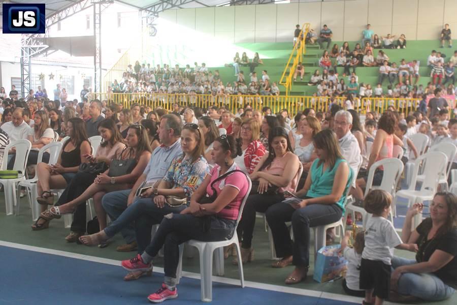 Alunos de diferentes séries do Colégio Dom Inácio de Guaxupé (das unidades I e II) participaram, nesta quarta-feira, 28 de setembro, do "1º Show de Talentos" promovido pela escola. Realizado com o objetivo de fomentar a arte entre os estudantes, o evento contou com a participação de aproximadamente cento e cinquenta pessoas, entre crianças, pré-adolescentes e adultos. Mais do que isto, a iniciativa reuniu famílias inteiras, tendo comprovado o potencial artístico de muita gente. O "1º Show de Talentos" do D. Inácio foi composto por exibições musicais, de dança, recitação de poemas, apresentações teatrais, exposição de telas e desenhos, em geral. Num ambiente todo decorado, com cenário adequado para peças artísticas de porte profissional, os artistas fizeram bonito: "Não será mais uma apresentação. Para nós, representa grandes aprendizagens e oportunidade para fazer a diferença na vida de cada um, utilizando linguagens e comunicando ideias, sentimentos e valores humanos. Enxergamos grandes amizades, descobertas, superação e a expressão mais pura de um artista, como aquele que cultiva sua emoção e que percebe o mundo com sua alma", comentou a diretora do Colégio, Juliana Costa Magalhães. (Fotos: Waddy Carneiro ? Jornal JOGO SÉRIO)