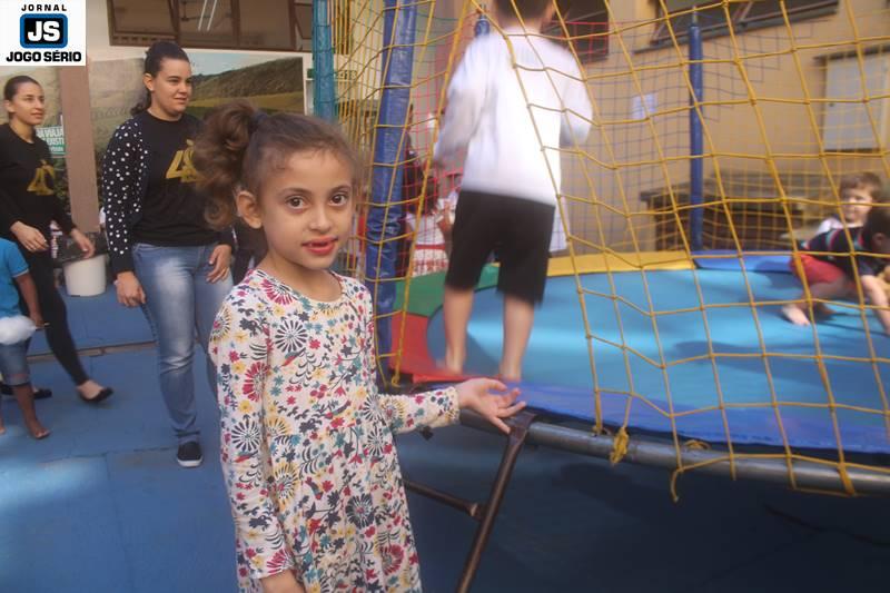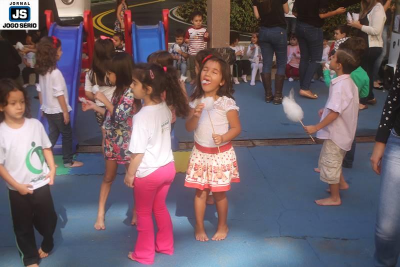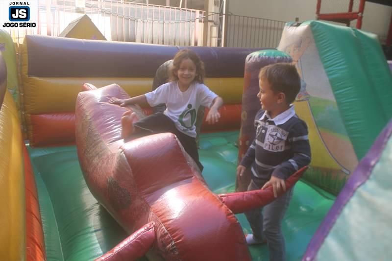 PARA AS CRIANÇAS: Enquanto os pais e familiares dos alunos assistiam à palestra, no poliesportivo, as crianças divertiam-se nos pátios da instituição. Cada qual já com suas áreas de recreação próprias, as dependências foram abrilhantadas por parque de diversões, distribuição de pipoca e algodão-doce, além de muita interatividade, sob a condução das professoras do Colégio. Ao final, cada qual presenteou sua mãe, com kits ornamentados artesanalmente pelos próprios alunos, em função do Dia das Mães, que este ano será comemorado dia 14 de maio, em todo o Brasil. – ACOMPANHE, nesta matéria, várias fotos feitas pela equipe do Jornal JOGO SÉRIO, sobre o Dia da Família no Colégio Dom Inácio.