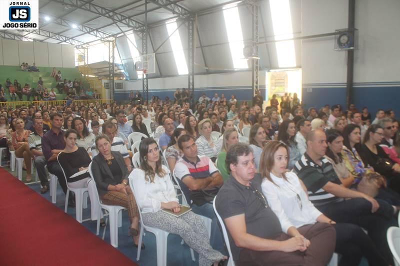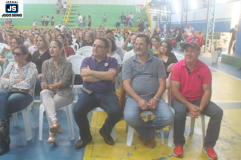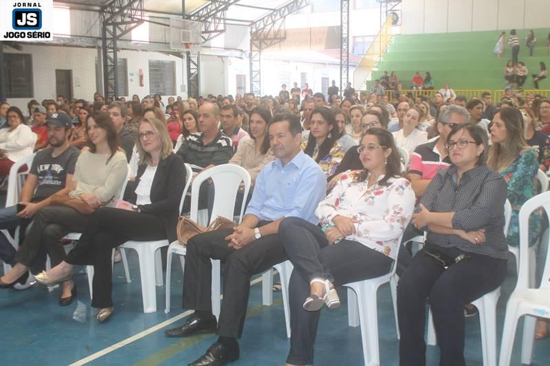 Quanto à palestra, professor César Nunes falou por pouco mais de uma hora com os pais e familiares dos alunos. O tempo todo, ele utilizou de ciências, mas principalmente vivência e humanização para comunicar-se: “Estamos num dos mais sagrados templos, que é a escola, diante da mais bendita instituição, que é a família. E devemos, portanto, estar sempre atentos às coisas realmente importantes na vida, pois a ciência se busca na escola e o amor, a convivência sadia, o crescimento afetuoso encontra-se na família”, comentou o especialista, que exibiu vasto conhecimento, oratória e grandeza. Por outro lado, falou com franqueza e simplicidade ao público, que o aplaudiu de pé, ao final da explanação. – VEJA, posteriormente, entrevistas de autoridades e visitantes, presentes neste evento.