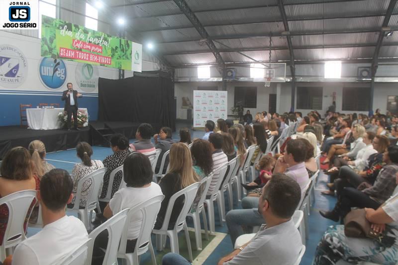 A diretoria das escolas da Fundação Educacional Guaxupé promoveu, nesta manhã de sábado, 6 de maio, o “Dia da Família” no Colégio Dom Inácio. O evento, que contou com a participação de centenas de pessoas, entre pais, alunos e convidados, destacou a importância das instituições, com ênfase ao convívio familiar e a escola. Num dia mais do que especial, o encontro foi abrilhantado por uma palestra do educador paranaense César Nunes, apontado como um dos mais consagrados do País. O “Dia da Família” foi aberto por uma apresentação especial da dupla caipira “Marcos Violeiro & Cleiton Torres”, convidados do reitor do Unifeg, professor doutor Reginaldo Arthus. Muito talentosos, eles arrancaram calorosos aplausos da grande plateia presente. Os pais, antes disto, foram recepcionados com um café da manhã especial, servido pela FUNDEG e seus parceiros.