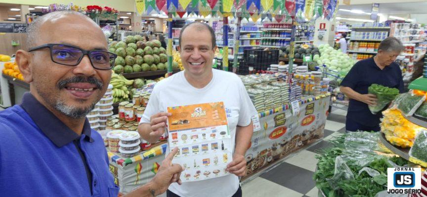 As lojas SÃO JOÃO Supermercados encontram-se irresistíveis principalmente por conta das promoções "Arraiá de Ofertas" e "Cheque Esticadão", as quais comprovam as vantagens para clientes da cidade e região. Visite uma das unidades São João e lembre-se de que, pelo Cheque Esticadão, hoje você tem 73 dias de prazo e, amanhã, são 72 dias!). Baixe o aplicativo "Família São João" ou cadastre-se num dos caixas das lojas para obter descontaços em suas compras). Com estrutura, tradição, variedade e preços imperdíveis, o SJ é considerado, há noventa anos, como o "supermercado da família". Nesta manhã de sábado, 29 de junho, o repórter Carlão, do Jornal JOGO SÉRIO, e o locutor Sidnei Madeira interagiram com o público, via Instagram, na loja Floriana, sobre a série de benefícios disponíveis! CLIQUE AQUI para assistir a íntegra do bate-papo e, em seguida, faça suas compras no supermercado da família, onde você está em casa!