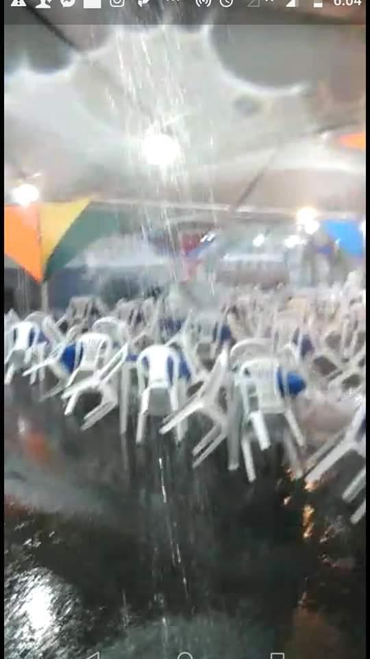 A forte chuva desta tarde de domingo, 14 de abril, danificou a barraca da Feira da Bondade, em andamento no Parque Mogiana, sob a organização da APAE. Por isso, as atividades de hoje estão canceladas, sendo que o certame retorna nesta quinta-feira, 18 de abril. A tempestade, vale lembrar, causou problemas em vários pontos da cidade, sendo que Prefeitura, Defesa Civil e Bombeiros estai nas ruas, em trabalho de prevenção e manutenção.