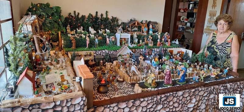 Caracterizada por conta do dom à arte, dona Cida recebe visitações constantemente de pessoas interessadas em conhecer seu presépio. "Tanto, que hoje já é dia 6 de janeiro e ainda não vamos desmontá-lo, pois há pessoas que querem ver, mas ainda não conseguiram vir", complementou ela, enquanto externava o carinho para com cada peça de sua coleção. AJUDE O jornal que lhe informa a todos os momentos: faça um PIX de qualquer valor para 11.086.919/0001-66. - CLIQUE AQUI e receba os conteúdos do JOGO SÉRIO em seu whatsapp. - NESSE LINK, você passa a seguir a nova fanpage/facebook Jornal JOGO SÉRIO. - A QUALQUER instante, acesse www.jornaljogoserio.com.br e fique muito bem informado.