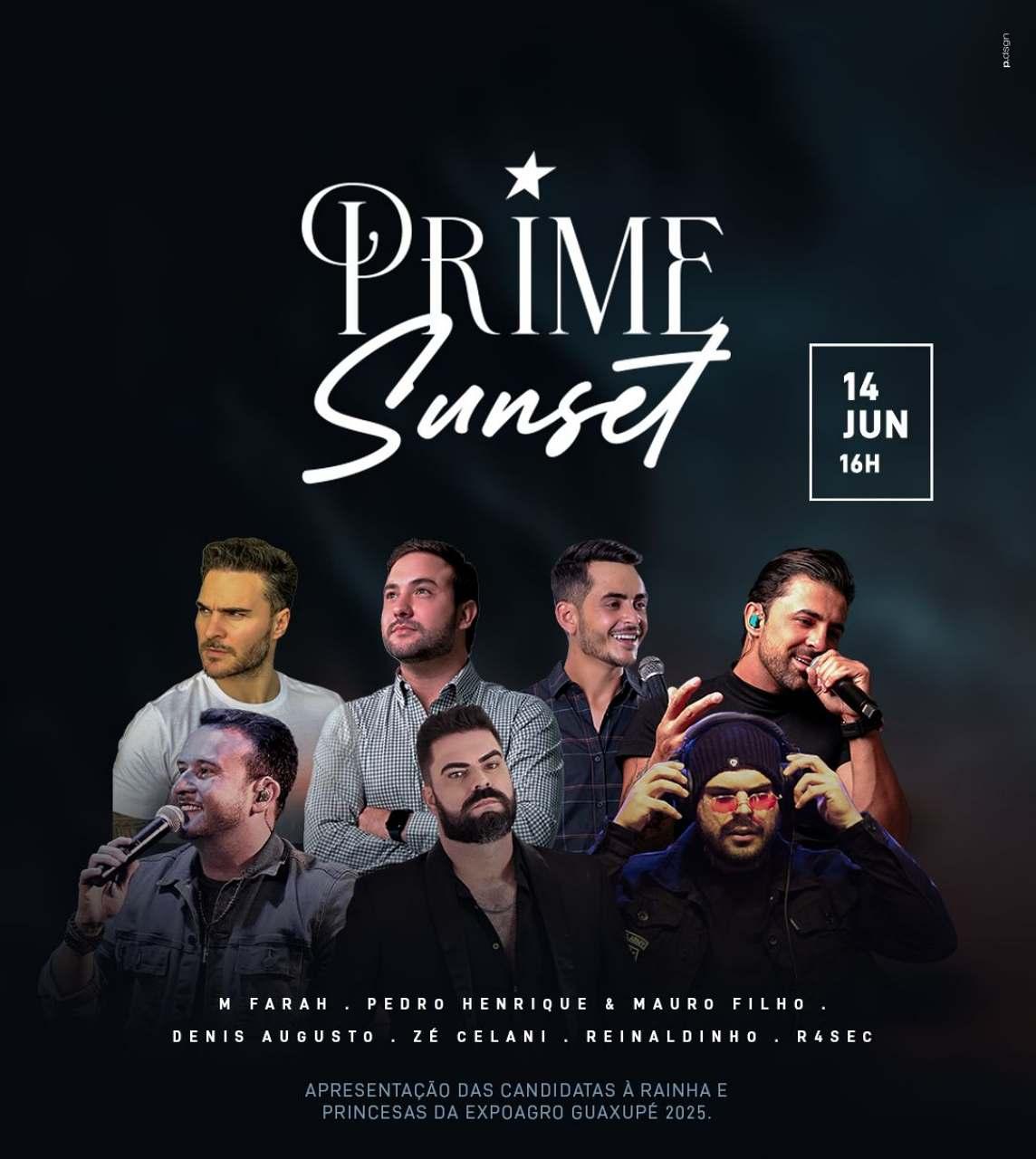 O evento "Prime Sunset", que antecederá a Expoagro Guaxupé 2025, será realizado no próximo dia 14 de junho, a partir das 16 hotas, no Clube de Campo, em Guaxupé, no Sudoeste mineiro. Dos artistas confirmados destacam-se as presenças de Maurício Farah, Pedro Henrique & Mauro Filho, Denis Augusto, Zé Celani, Reinaldinho e o Dj R4Sec. Além dos espetáculos musicais, o evento destacará, ainda, a apresentação das candidatas ao concurso "Rainha Expoagro 2025"! De volta após vários anos, a Expoagro ocorrerá de 4 a 12 de julho próximos, com Luan Santana, Jiraya Uai, Ana Castela, Bruno César e Rodrigo, Gustavo Mioto, Dennis Dj, Hugo e Guilherme, Open Farra e Panda. E, junto a tudo isso, a organização do evento (Us Mininus e MP Produções, com o apoio do Sindicato dos Produtores Rurais, Prefeitura, entre outros) prepara também um rodeio com montarias em touros, praça de alimentação, estrutura e muito mais. CLIQUE AQUI e saiba mais! - AJUDE O jornal que lhe informa a todos os momentos: faça um PIX de qualquer valor para 11.086.919/0001-66. - CLIQUE AQUI e receba os conteúdos do JOGO SÉRIO em seu whatsapp. - NESSE LINK, você passa a seguir a nova fanpage/facebook Jornal JOGO SÉRIO. - A QUALQUER instante, acesse www.jornaljogoserio.com.br e fique muito bem informado.