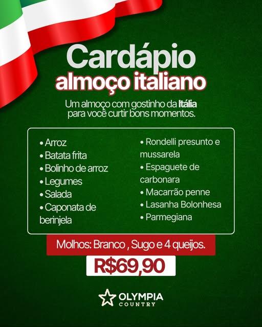 Olympia Country promoverá seu "Almoço Italiano" neste domingo