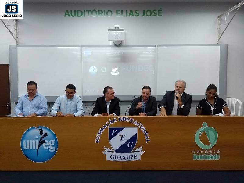 Paolo e Ronaldo participaram de uma mesa no Auditório Elias José, que fica no interior do Unifeg. Além deles, o reitor do Centro Universitário, professor doutor Reginaldo Arthus, o pró-reitor acadêmico da instituição, dr. Antônio Carlos Pereira (Tataio), a coordenadora do curso de Direito da faculdade, professora doutora Ana Cristina Serrano Mascarenhas e o padre Reginaldo José da Silva, Cura da Catedral, compuseram a Mesa.