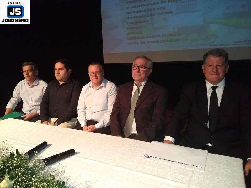 A comemoração, que teve o diretor administrativo da Santa Casa, Edson José Dias Leite, na condição de mestre de cerimônia, foi composta pelo presidente da Santa Casa, dr. Roberto Vergili, além do reitor das escolas da Fundação Educacional Guaxupé, professor doutor Reginaldo Arthus, o administrador da Unimed Guaxupé, Márcio Villas Boas, o presidente da Associação Médica, dr. Kêmil Abdala Tauil, e o dirigente do Conselho Consultivo do Hospital, dr. José Roberto de Faria. Arthus, diga-se de passagem, discursou sobre a parceria do Unifeg: "Toda vez que ajudamos a Santa Casa, estamos auxiliando as políticas públicas de Saúde. Por isto, dr. Roberto, que nosso Hospital continue nos desafiando, para continuarmos a fazer uma Guaxupé sempre grandiosa", disse o dirigente escolar, que mencionou, ainda, o propósito de efetivar a Faculdade de Medicina dentro do Unifeg.