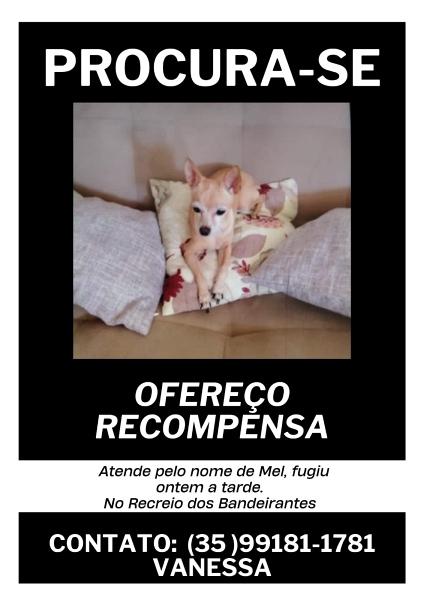 Uma família do Jardim Recreio dos Bandeirantes, em Guaxupé, no Sudoeste mineiro, procura desesperadamente por sua cachorrinha de estimação, a qual atende pelo nome de "Mel" e desapareceu neste domingo, 11 de maio. Pertencente a crianças, o bichinho precisa retornar ao lar, sendo que informações devem ser transmitidas ao telefone whatsapp de número (35) 9-9181-1781 (com recompensa). - AJUDE O jornal que lhe informa a todos os momentos: faça um PIX de qualquer valor para 11.086.919/0001-66. - CLIQUE AQUI e receba os conteúdos do JOGO SÉRIO em seu whatsapp. - NESSE LINK, você passa a seguir a nova fanpage/facebook Jornal JOGO SÉRIO. - A QUALQUER instante, acesse www.jornaljogoserio.com.br e fique muito bem informado.