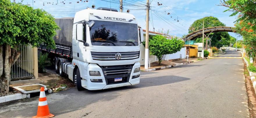Mais uma carreta fica "presa" em via de perímetro urbano na cidade de Guaxupé