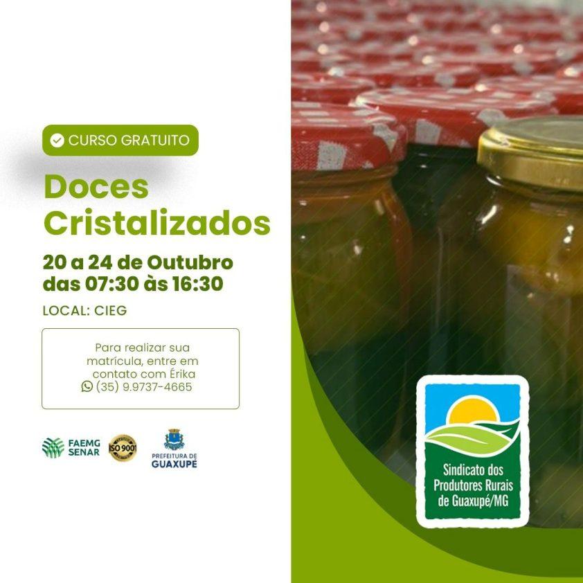 As aulas acontecem de 20 a 24 de outubro, das 7h30 às 16h30, no CIEG – Guaxupé. Durante o curso, os participantes aprenderão a preparar geleias, doces em compota e frutas cristalizadas, utilizando técnicas simples e acessíveis.
