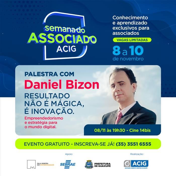 A Associação Comércio e Indústria de Guaxupé (ACIG), em parceria com a Prefeitura, o SEBRAE, e o Conselho da Mulher Empreendedora promove entre os dias 8 e 10 de novembro a primeira Semana do Associado ACIG. Serão cursos e palestras especiais para o desenvolvimento do comércio da cidade.