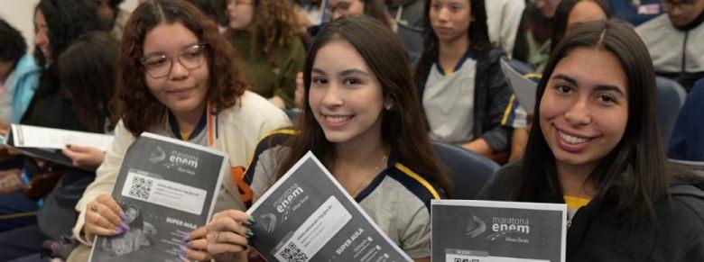 Simulados e ações de preparação: A SEE/MG também realiza uma série de ações ao longo do ano letivo para auxiliar os estudantes. Em maio, foi aplicado o segundo teste de redação no modelo do Enem, com participação de mais de 700 mil alunos. Em abril, a rede realizou o primeiro simulado oficial, e uma nova edição está prevista para o segundo semestre, junto a novos testes e aulões preparatórios. Também na próxima sexta-feira (6/6), será realizado um aulão no município de Paracatu, no Noroeste de Minas. Entre as ações previstas, serão realizadas resolução de questões das diversas áreas do exame, além de atividades que estimulem a participação dos estudantes no ensino superior, incluindo dinâmicas lúdicas e interativas. As aulas ao vivo da Maratona Enem são transmitidas de segunda a sexta-feira, às 14h, pelo canal da Educação no YouTube, canal 2 da multiprogramação da Rede Minas e pela própria plataforma Enem MG, que também pode ser acessada por aplicativo no celular.