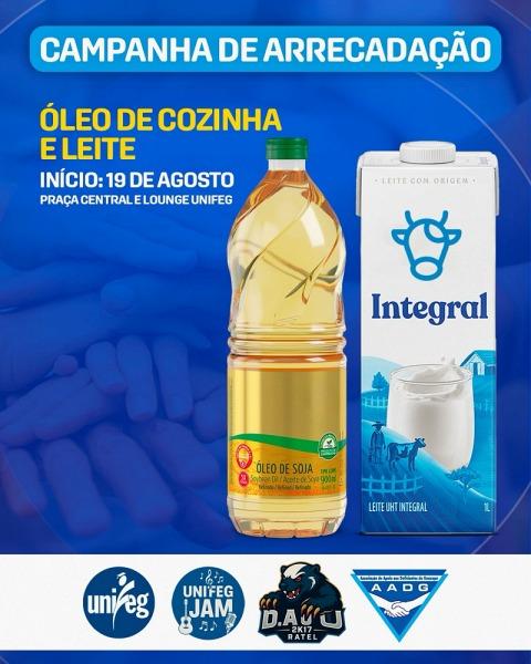 O Centro Universitário da Fundação Educacional Guaxupé (UNIFEG), em parceria com a Associação de Apoio aos Deficientes de Guaxupé (AADG), iniciou nesta segunda-feira (19) uma campanha solidária de arrecadação de leite e óleo de cozinha.