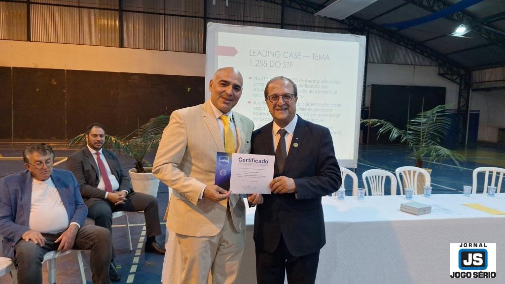 Dr. Raimundo Messias falou para centenas de pessoas no Complexo Poliesportivo Dr. Mário Dallora, onde os mestres de cerimônia, Gabriel Romanelli Silva, do 9º período do Direito/Unifeg, e Ana Paula da Silva, do 7º período, apresentaram mesa diretora com a presença do palestrante, além do presidente da FUNDEG, Aloísio Coelho, a reitora das escolas da Fundação, professora mestra Luciana Angelino Gonçalves Clemente, o professor doutor Donizete Delorenzo Ribeiro do Valle (na ocasião, representante da coordenadora do curso de Direito, Dra. Ana Cristina de Souza Serrano Mascarenhas, ausente por problemas de saúde); os pró-reitores do Unifeg, professores doutores Luís Manoel de Paiva Souza (acadêmico) e Marcos Ribeiro Dias (administrativo); o conselheiro da Fundação, Carlos Alberto Bárbara Cruvinel (Beto), os vereadores Carlão, do Jornal JOGO SÉRIO, e Francis Osmar da Silva; os juízes de Direito, Drs. Milton Biagioni Furquim e João Batista Mendes Filho; o promotor de Justiça, Dr. Bruno de Paula Souza Marques, o presidente da 57ª Subseção da OAB, Dr. Maylon Furtado Passos, o conselheiro seccional da Ordem em Minas Gerais, Dr. Marco Antônio Alves, a coordenadora do Procon, Dra. Maria Amélia Chueiri; o policial civil Sílvio Hautz, da 5ª Delegacia Regional de Segurança Pública (e da primeira turma de Direito do Unifeg); o procurador patrimonial da Prefeitura, Dr. Marco Aurélio Silva Batista; a professora dra. Tainá Damas de Faria (representante dos docentes da universidade) e a estudante Monike Costa da Silva, em nome dos universitários.