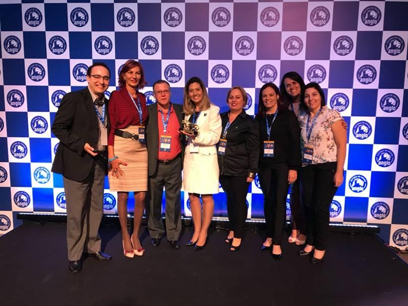 O “Leão de Ouro” foi conquistado em solenidade ocorrida durante a Convenção Anglo 2018, que aconteceu neste fim de semana, em Atibaia (SP). Na ocasião, o Dom Inácio foi representado pelo reitor das escolas da Fundação, professor doutor Reginaldo Arthus, além do pró-reitor administrativo do Unifeg, professor-mestre André Luiz de Andrade Melo, a diretora do Colégio, professora mestra Juliana Costa, e as coordenadoras Viviane Domingues Preto de Faria (Ensino Fundamental I), Maria Isabel de Barros Campos (Ensino Fundamental II), Luciana Rodrigues Carvalho (Coordenadora Pedagógica) e Ana Paula Poscidônio Magalhães (Ensino Médio).