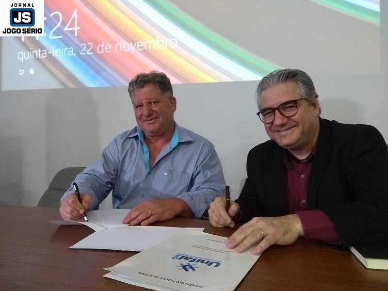 As direções da Santa Casa de Guaxupé e da Universidade Federal de Alfenas – UNIFAL, com pólos em Varginha, Poços de Caldas e Alfenas – firmaram, nesta tarde de quinta-feira, 22 de novembro, um convênio de colaboração, onde a referida instituição de ensino superior enviará estagiários para atuação teórico-prática na entidade local de saúde público-privada. O acordo, que será efetivamente iniciado em fevereiro de 2019, foi oficializado em cerimônia simples, mas muito importante, ocorrida no anfiteatro do Hospital.