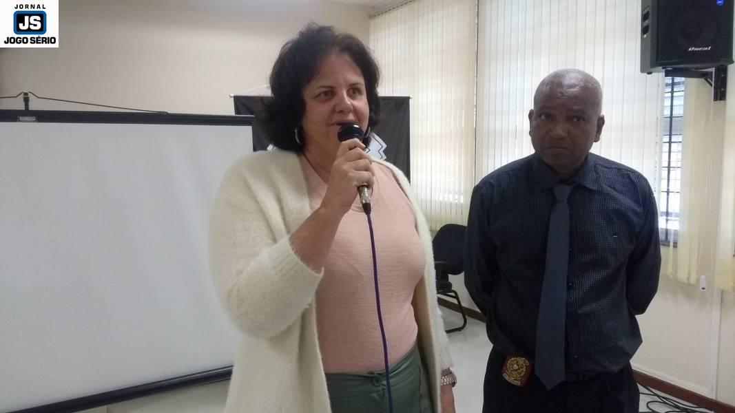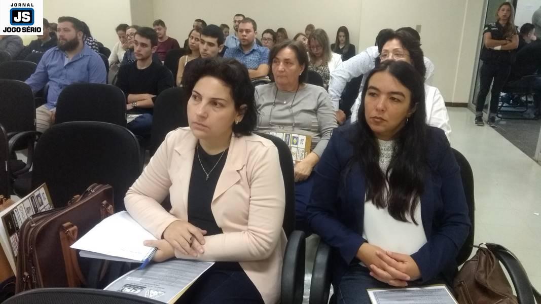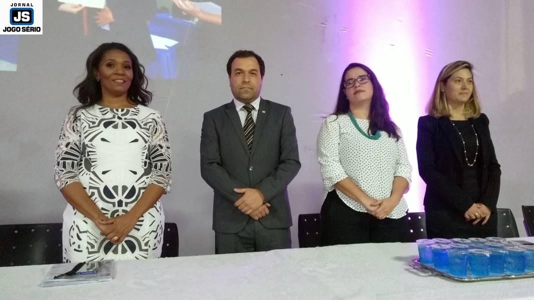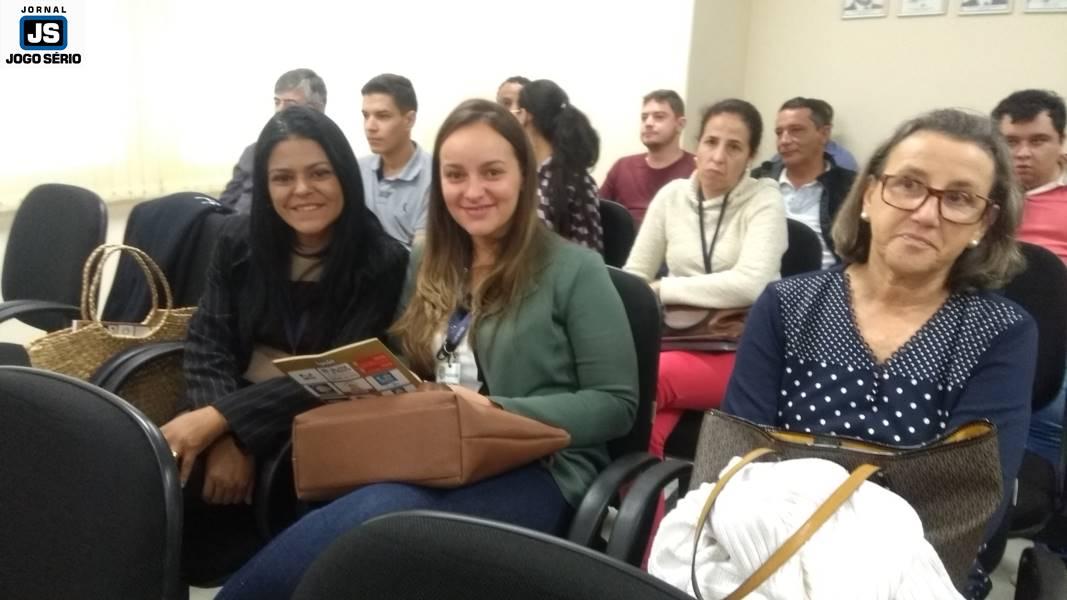 A professora Carol, a presidente Luciana e a gere...