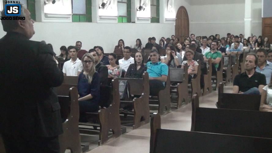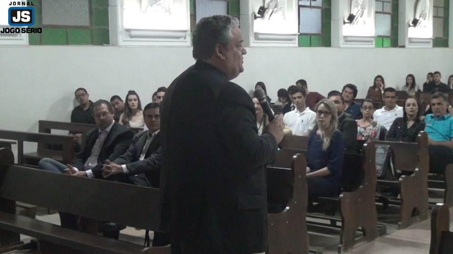 Dr. Thales dividiu Mesa Diretora com os defensores públicos Felipe Moreira Favila e Luiz Roberto Costa Russo, o coordenador do curso de Direito do Unifeg, professor doutor Humberto Luís Versola, o vereador João Fernando de Souza (que ocupa cargo na diretoria da FUNDEG), o professor Osmar Patti Magalhães e a aluna Lorrane Alves Ferreira, representante dos discentes da instituição. Após a sessão cívica, o palestrante iniciou seus trabalhos, tendo falado por cerca de duas horas, na Capela São José, a qual esteve lotada para ouvir ao profissional. Sempre muito conhecedor do Direito, o promotor (que este ano atua na Justiça Eleitoral) transmitiu sua experiência, alertou aos alunos sobre pontos fundamentais da legislação e chamou a atenção, a todo momento, para a aplicabilidade correta das leis.