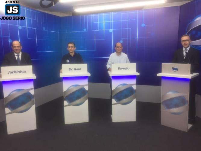 O debate está sendo conduzido pelo comunicólogo Ricardo Zaiat, dirigente das emissoras da família Zaiat. Diferente das expectativas, o programa ocorre em meio a um clima tranquilo, com os candidatos tendo sido acompanhado por suas equipes de marketing, além das respectivas esposas. No local, que conta com a presença de policiais militares, a fim de manter a ordem, Jarbinhas, Barretinho e dr. Raul respondem às perguntas.