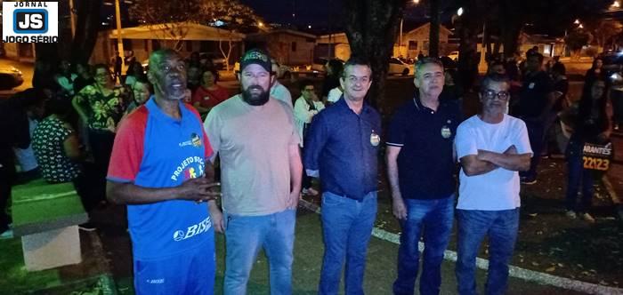 O dirigente do projeto socioesportivo "Aqui, cuidamos dos nossos", Antônio Carlos Miguel (Itabirito), reuniu moradores da Vila Conceição, em Guaxupé, no Sudoeste mineiro, para receberem o deputado estadual Antonio Carlos Arantes (PL), candidato à reeleição, e o postulante a parlamentar federal, Sandro Fusca (PMN). O encontro ocorreu nesta noite de sexta-feira, 26 de agosto, na praça central do bairro. Da pauta, o professor da referida escolinha de futebol (que também atua como conselheiro tutelar) transmitiu uma demanda à dupla, que interagiu com o público em meio à campanha eleitoral que realizam na região. "Precisamos da cobertura de nossa quadra de futebol, pois quando chove as atividades são interrompidas", solicitou Itabirito, tendo o pedido sido acolhido pela assessoria dos dois políticos visitantes.