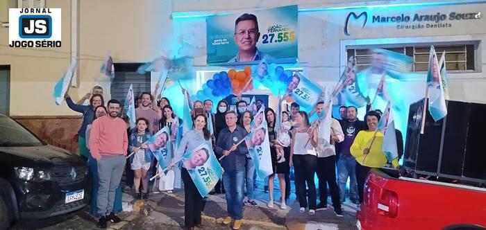 João Fernando recebeu apoiadores para a inauguração do comitê, os quais prestigiaram o político. Natural de Guaxupé, o candidato realiza uma campanha diferente do habitual, uma vez que optou por não utilizar recursos do Fundo Eleitoral (este ano, de R$ 5,7 bilhões). "Minha equipe são os amigos, voluntários e as redes sociais, por meio de onde tenho divulgado as propostas e o objetivo de fazer mais e bem melhor para Guaxupé", disse João.