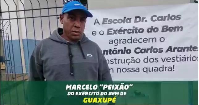 O líder comunitário Marcelo Souza de Andrade (Peixão) fez um agradecimento ao deputado estadual Antonio Carlos Arantes, vice-presidente da Assembleia Legislativa de Minas Gerais e candidato à reeleição, por conta da emenda de R$ 150 mil, destinada à construção de vestiários e melhorias na quadra da Escola Municipal Dr. Carlos de Souza Ribeiro. Utilizado pela associação socio-assistencial Exército do Bem, o espaço sedia aulas de muay thai, danças, futsal, voleibol, hip-hop, eventos religiosos, entre outros, sob o comando de "Peixão".