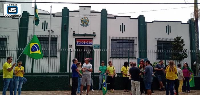 Eleitores de Bolsonaro protestam em frente ao Tiro de Guerra de Guaxupé