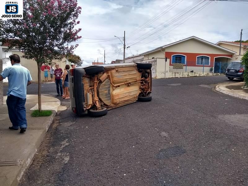 Colisão provoca capotamento no Jardim Planalto, em Guaxupé