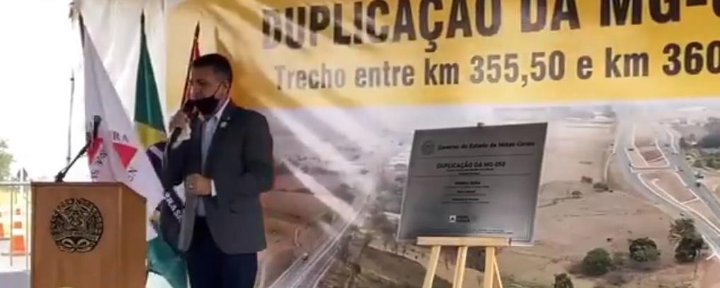 Emidinho fez o pedido durante a cerimônia: "Não e justo a "265", de Paraíso a Bom Jesus e Alpinópolis, estar naquela situação há dez anos! Faltam menos de dez quilômetros e não aguento mais ir ao DNIT e a conversa não sai do lugar! Se falarem que não vão concluir, há trechos pequeninos que dá para a gente fazer com emenda parlamentar. Então, queremos marcar uma reunião, pois é um descaso e precisa concluir! Vários deputados de nossa região lutaram muito pela ligação do Sul ao Triângulo. Pegaram lá em Guaxupé, há vinte anos, com muito trabalho e ve, fazendo Bom Jesus, ponte do Glória e, agora, estamos conversando para ligar até Sacramento, pois desenvolverá muito nossa região", cobrou Emidinho.