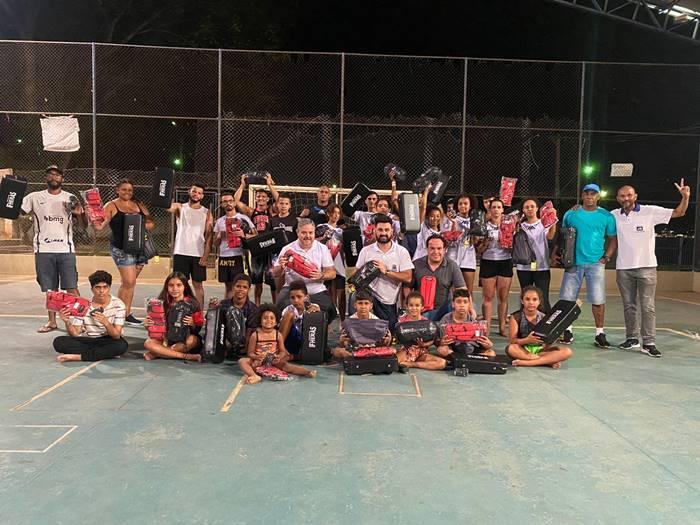 À frente da Divisão de Esportes da Prefeitura, o professor Murilo Chiarallo Gallate, responsável pela cotação e a compra dos produtos, participou da cerimônia de entrega, representando o prefeito, Dr. Heber Hamilton Quintella. Responsável pelo Muay Thai do Exército do Bem, o professor Alex Sandro Moraes conduziu uma apresentação de seus alunos, dos quais alguns, inclusive, lutarão em Alpinópolis, em evento regional.