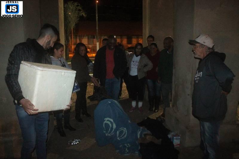 A ação humanitária foi organizada pela Igreja, onde os dirigentes e seguidores prepararam chocolates quentes, pães amanteigados, assim como cobertores. Nas diligências, que foram lideradas pelo líder comunitário Marcelo Souza de Andrade (Peixão), os participantes percorreram bairros como Colmeia I e II, Catetos, Jardim Santa Cruz, Parque Municipal Mogiana, Taboão, Praça da Saudade, Praça dos Estudantes, assim como áreas centrais, onde miseráveis procuram imóveis abandonados para se abrigarem.