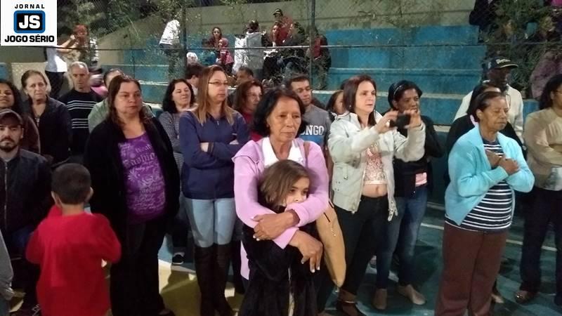 O evento foi aberto com a reza de um terço especial, em louvor a São Pedro e Nossa Senhora Aparecida. O instante, que foi conduzido por integrantes de grupos de oração dos bairros Colmeia I e II, atraiu famílias inteiras para perto das imagens das divindades. Depois, alunas da oficina de dança, das professoras Natália Rodrigues e Tamires Martins, exibiram-se em quadra, sob os aplausos dos presentes. “Pra gente, isto é muito importante, pois sem união não se faz nada. E, por isto, precisamos desta força da comunidade, com cada um ajudando um pouco, para que tanto as festas, quanto os projetos que temos no dia-a-dia, se desenvolvam”, comentou Tamires.