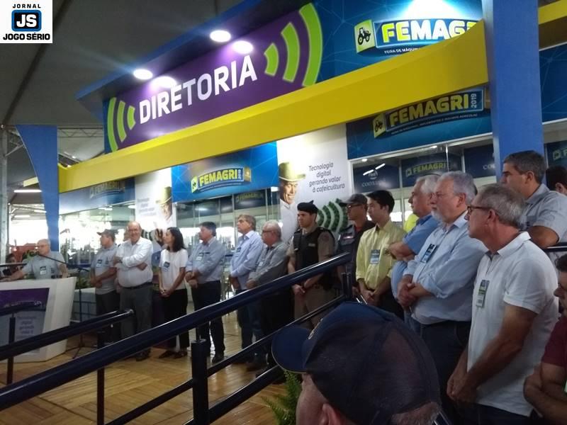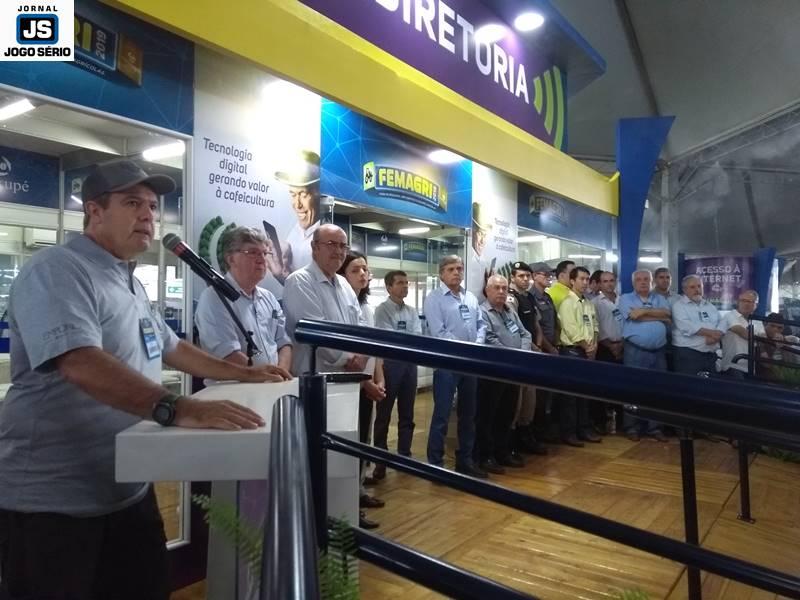 A abertura da FEMAGRI 2019, tendo como mestre de cerimônia o jornalista João Batista Olivi, do “Notícias Agrícolas”, o qual apresentou uma mesa simbólica, encabeçada pelo presidente da Cooxupé, Carlos Alberto Paulino da Costa, além de outros dirigentes daquela empresa, representantes dos poderes Judiciário, Legislativo e Executivo, além de convidados, em geral. “Espero que os cooperados gostem do que preparamos, pois este ano priorizamos a inclusão digital na vida do agricultor”, comentou o presidente da Cooperativa, a respeito do tema da Feira, que é “Tecnologia digital gerando valor à cafeicultura”.