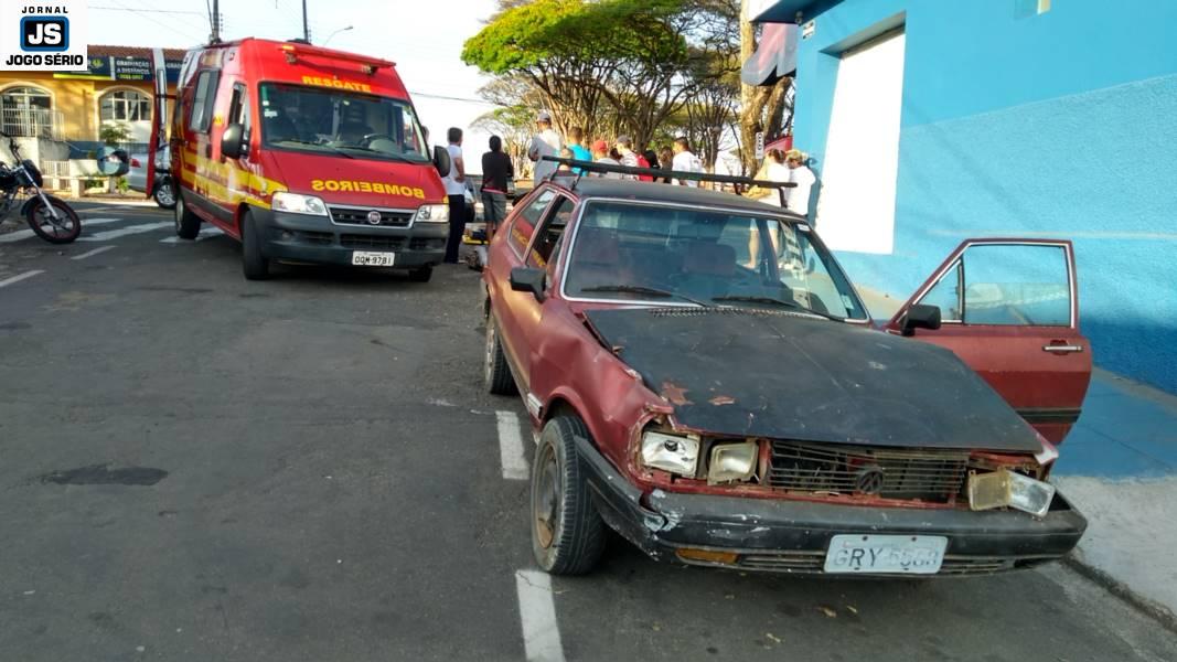 Homem fica ferido em colisão entre moto e carro no Centro de Guaxupé